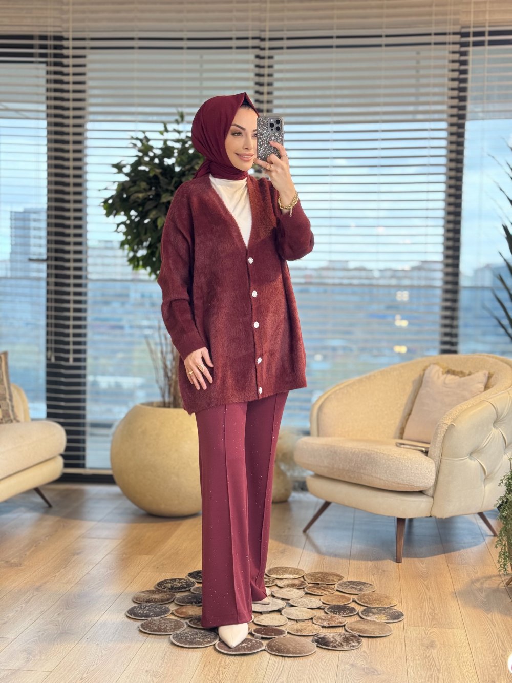 80259 Saçak V Yaka Hırka Bordo