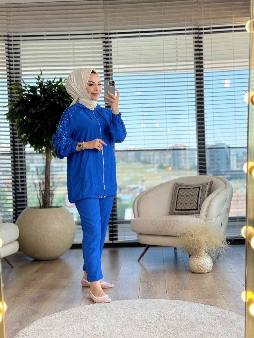 22763 Biye Detaylı Önü Fermuarlı Takım Siyah