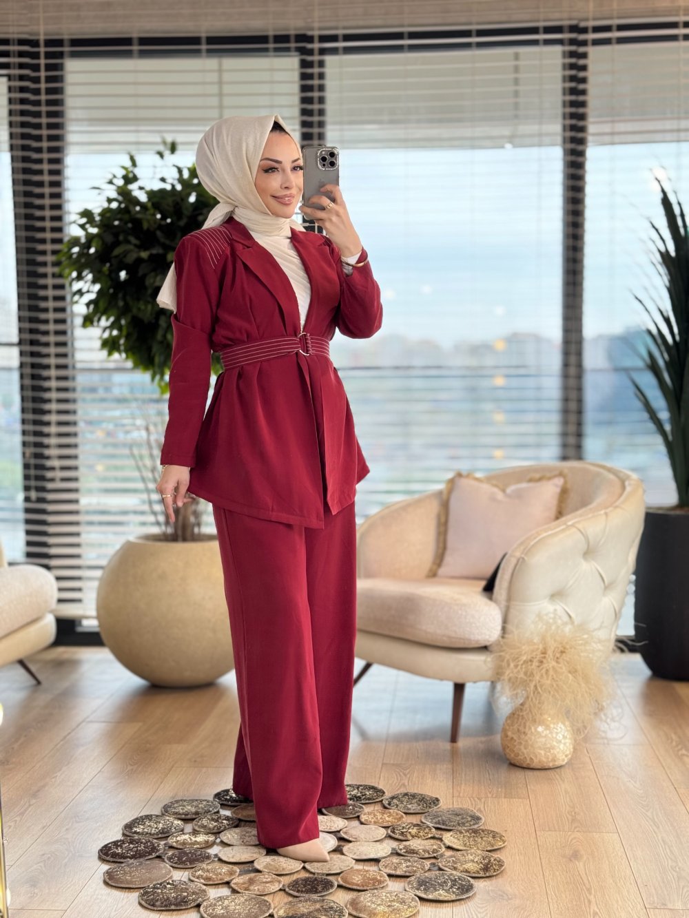 8491 Omuzları Dikişli Takım Bordo