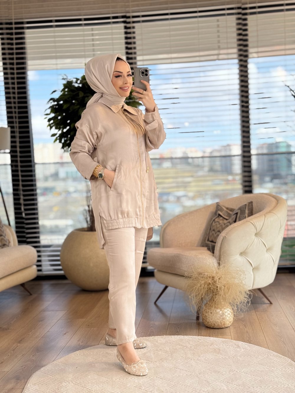 8504 Ön Fermuarlı Kol Manşetli Takım Bej