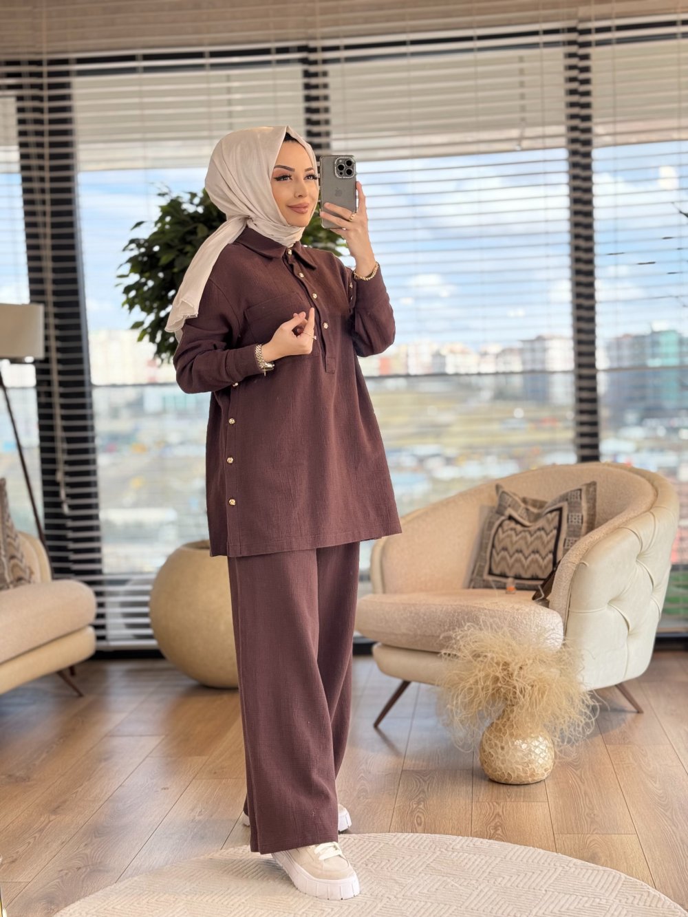 8513 Yandan Düğmeli Takım Kahve