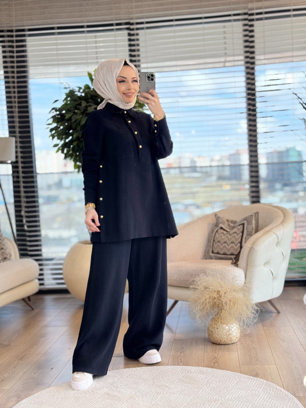 8513 Yandan Düğmeli Takım Siyah