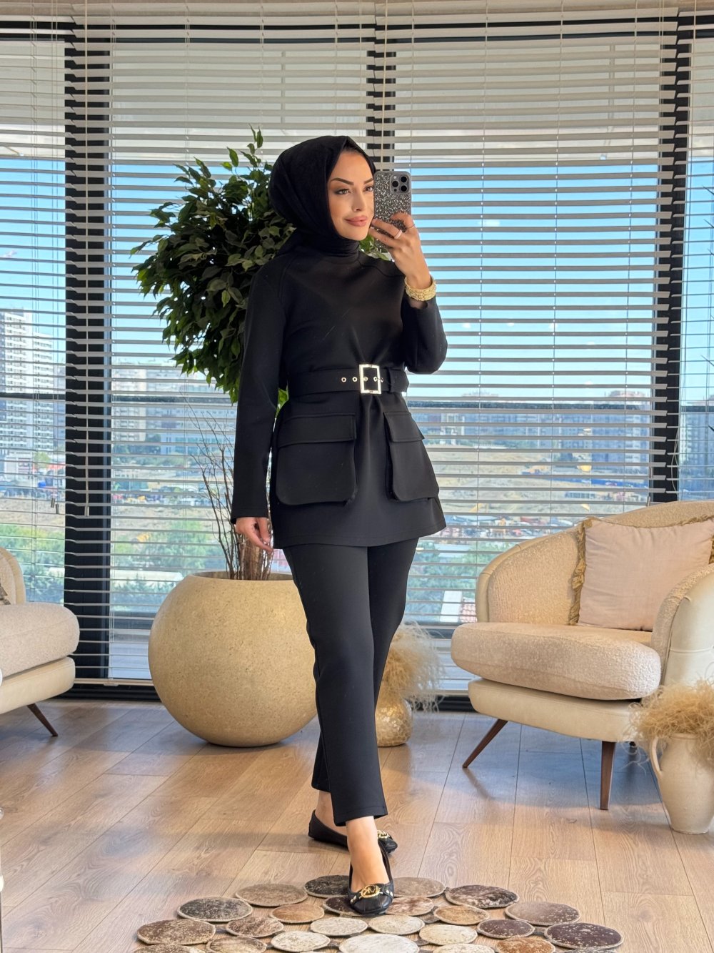 8566 Ön İki Cepli Kemerli Takım Siyah