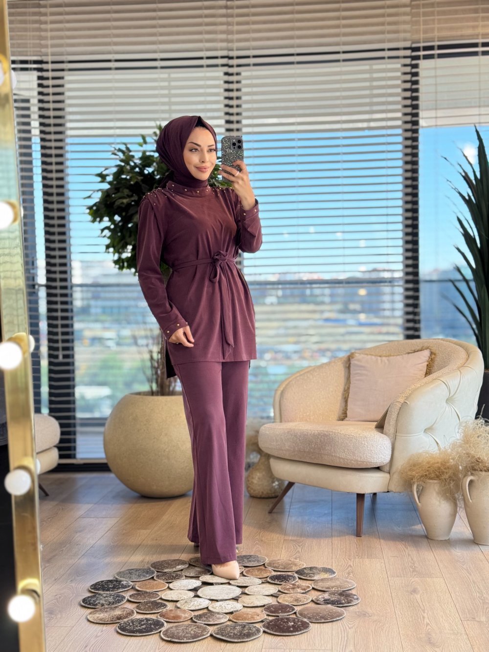 8569 Yaka Ve Omuzları Zımbalı Takım Bordo