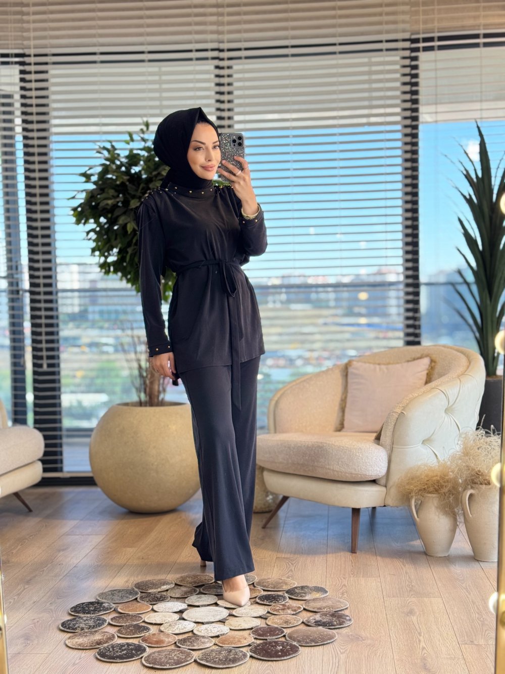 8569 Yaka Ve Omuzları Zımbalı Takım Siyah