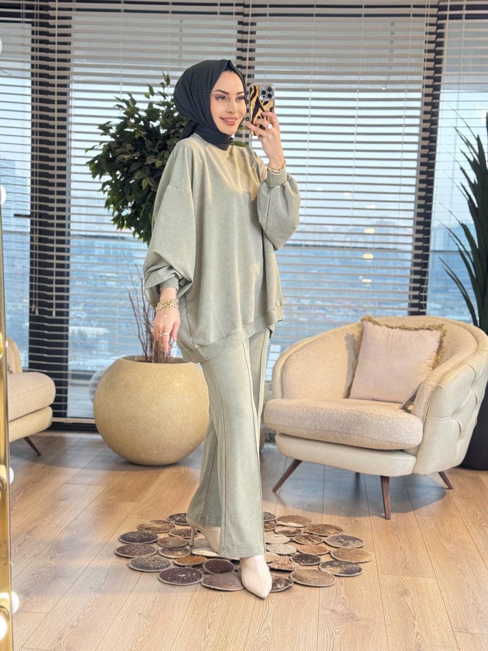 9033 Yarasa Kol Pant. Dikişli Takım Çağla