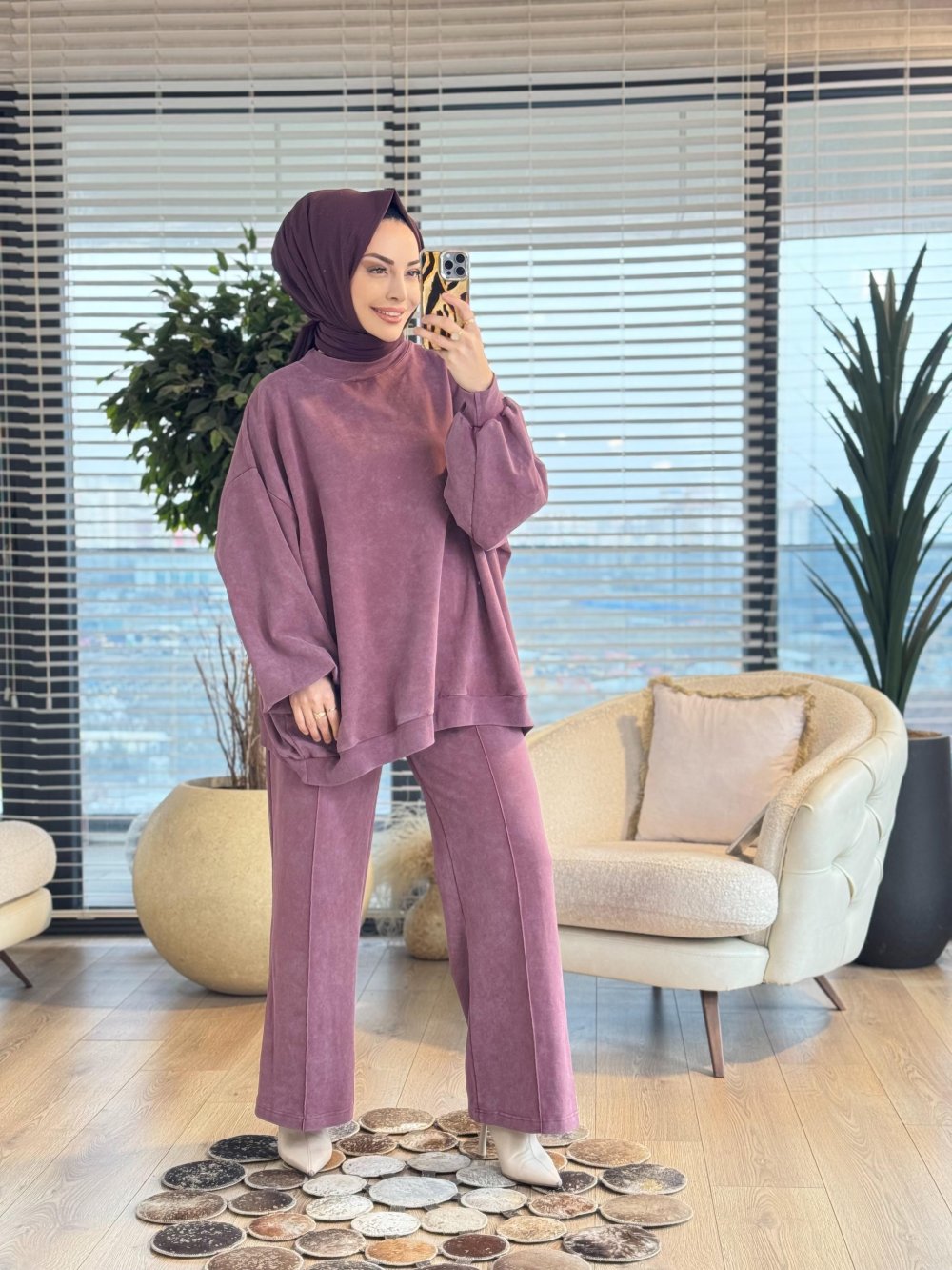 9033 Yarasa Kol Pant. Dikişli Takım Gül