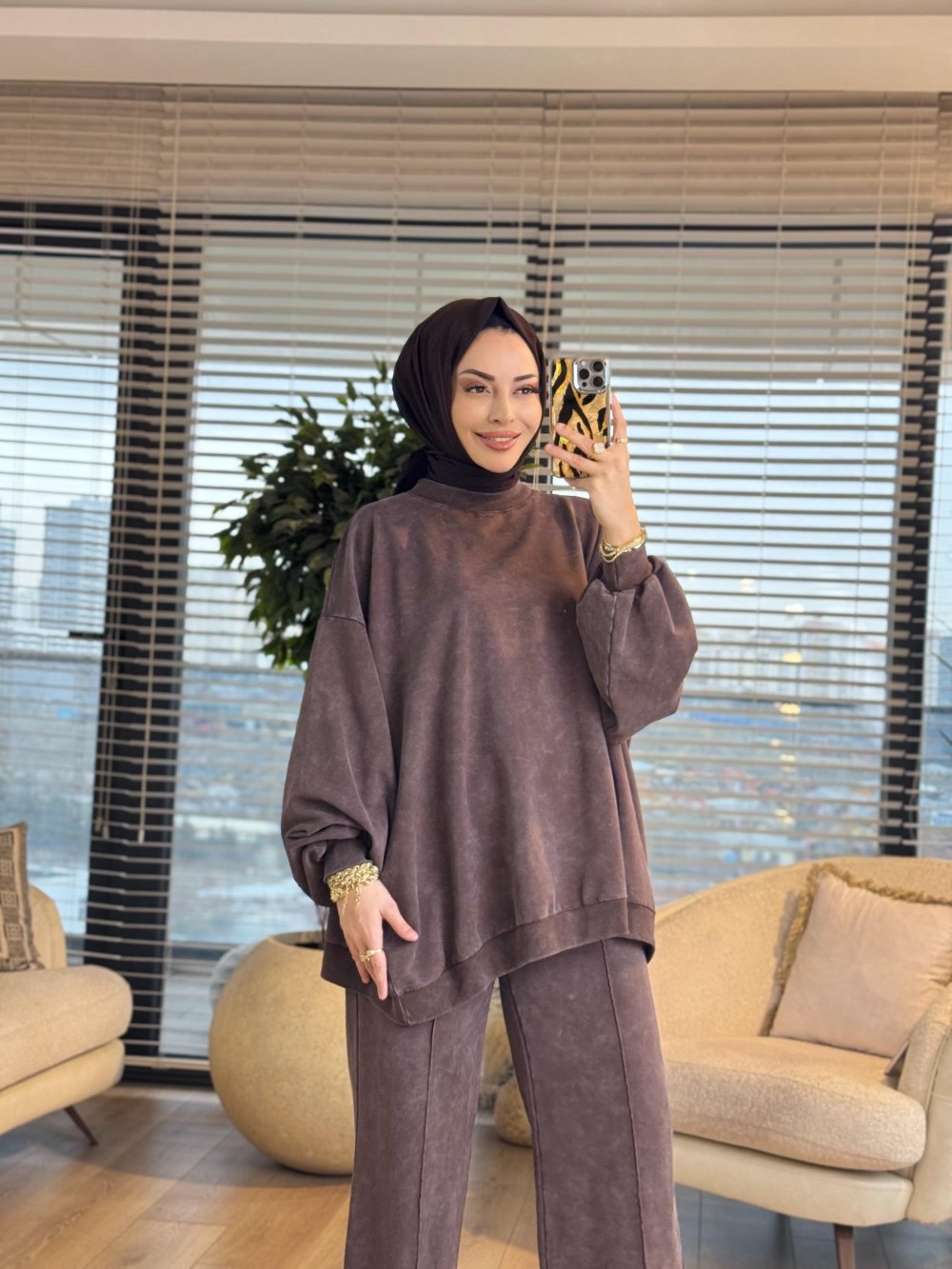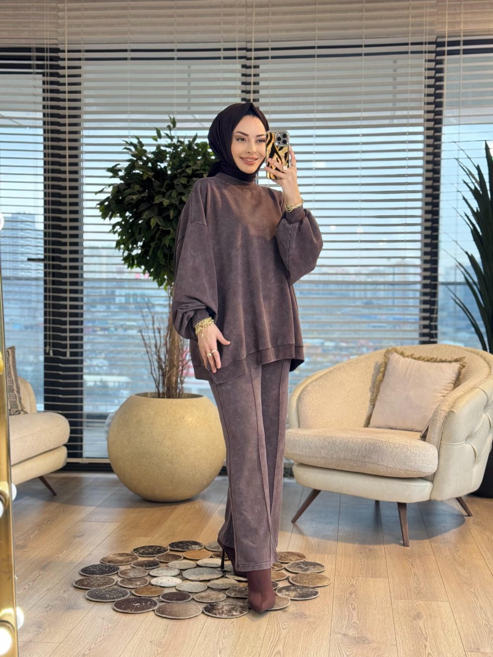 9033 Yarasa Kol Pant. Dikişli Takım Kahve