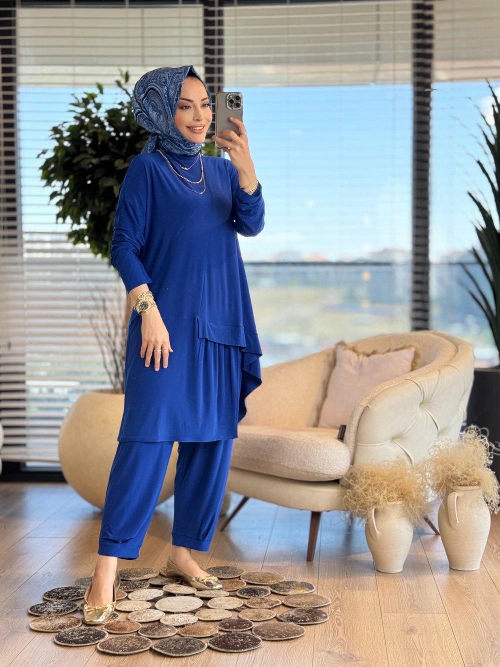 9100 Kardelen Şalvarlı Takım Saks