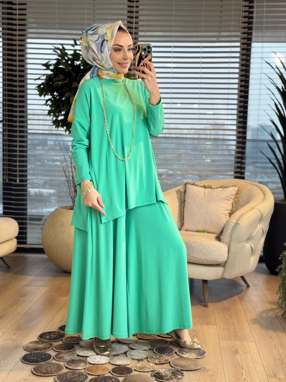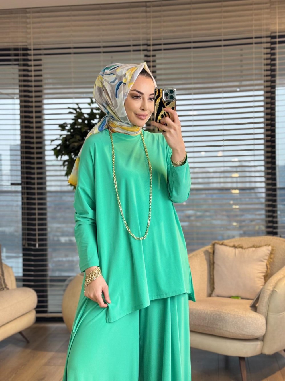 Tunik ön boy 73 cm, arka boy 79 cm, pantolon boy 101 cm