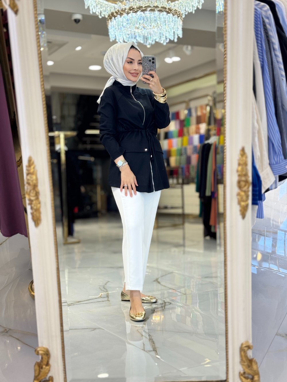 9258 Ön Cep Kapaklı Fermuarlı Kap Siyah