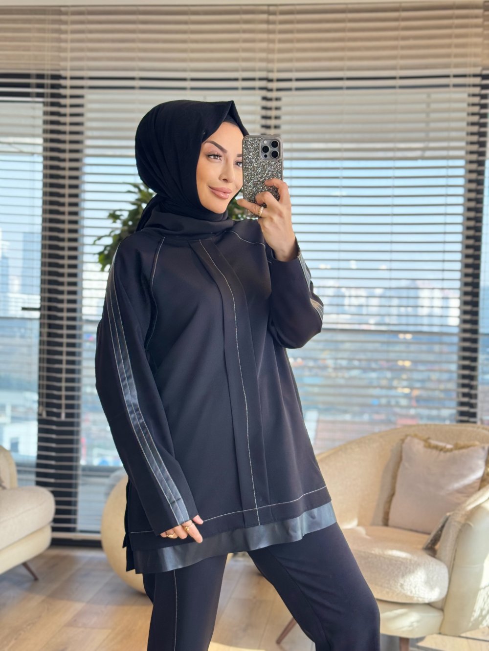 9771 Kolu Deri Şeritli Takım Siyah