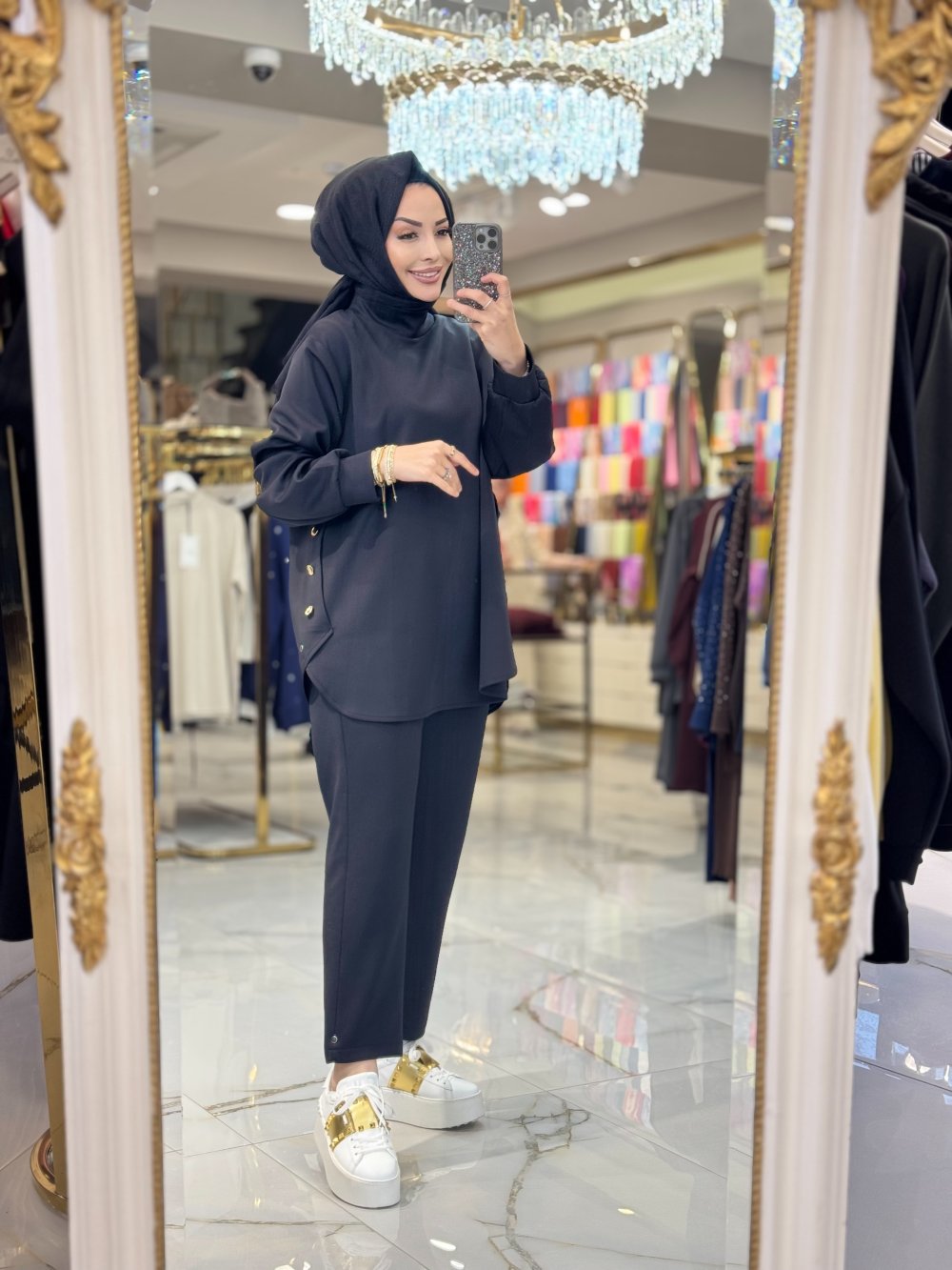 HWN6260 Yanları Düğme Detaylı Takım Siyah