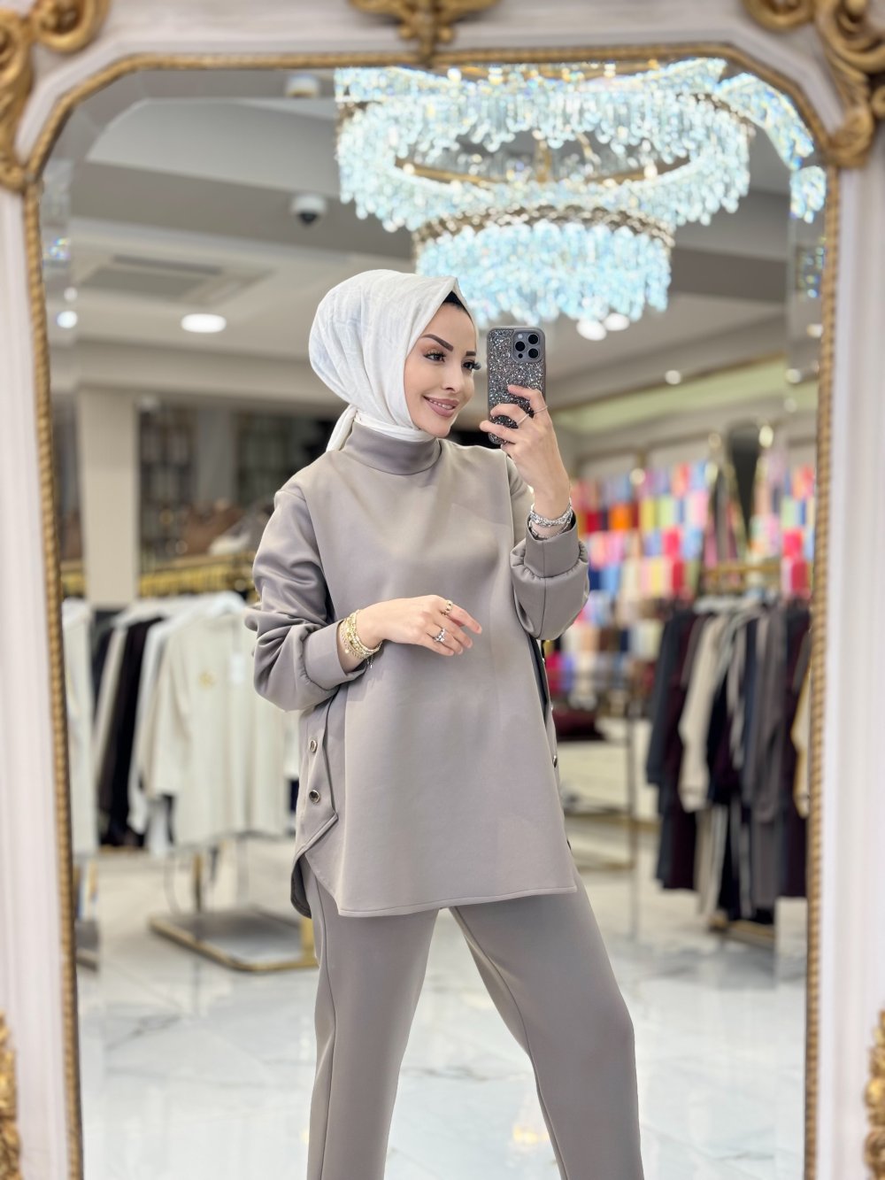 Tunik kısa kısım 67 cm, uzun kısım 73 cm, pantolon boy 93 cm
