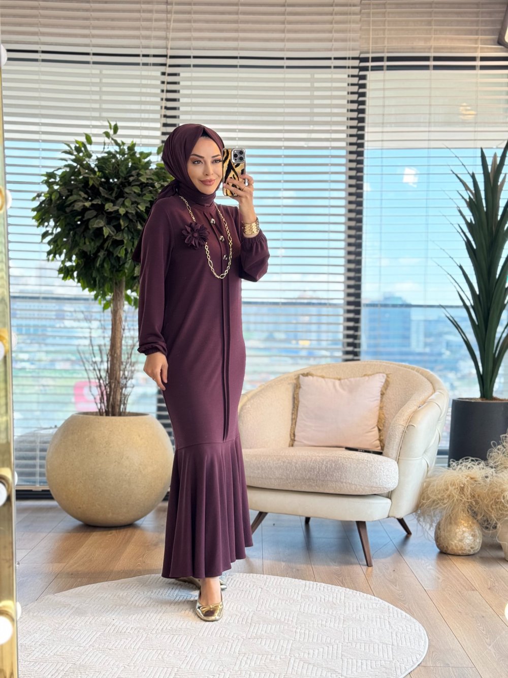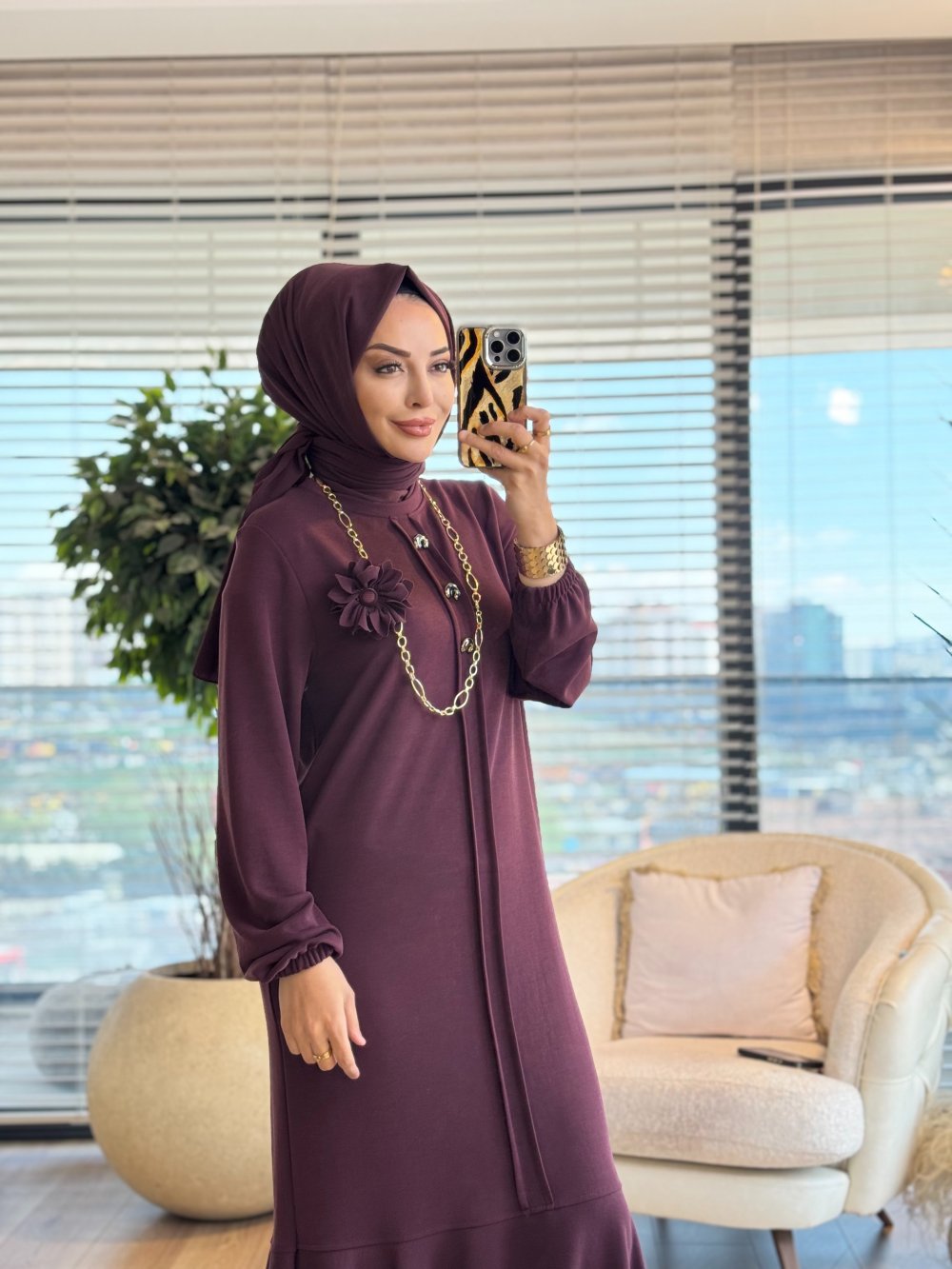 LYL118 Sahra Volanlı Düğmeli Elbise Bordo