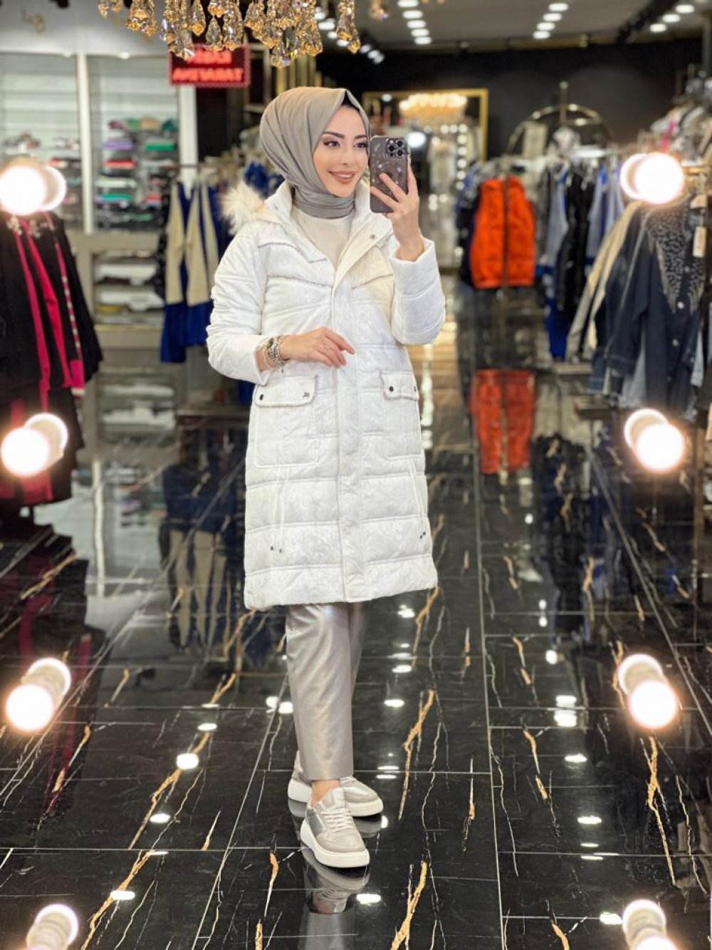 MB1862 Taş Baskılı Şişme Kaban Beyaz