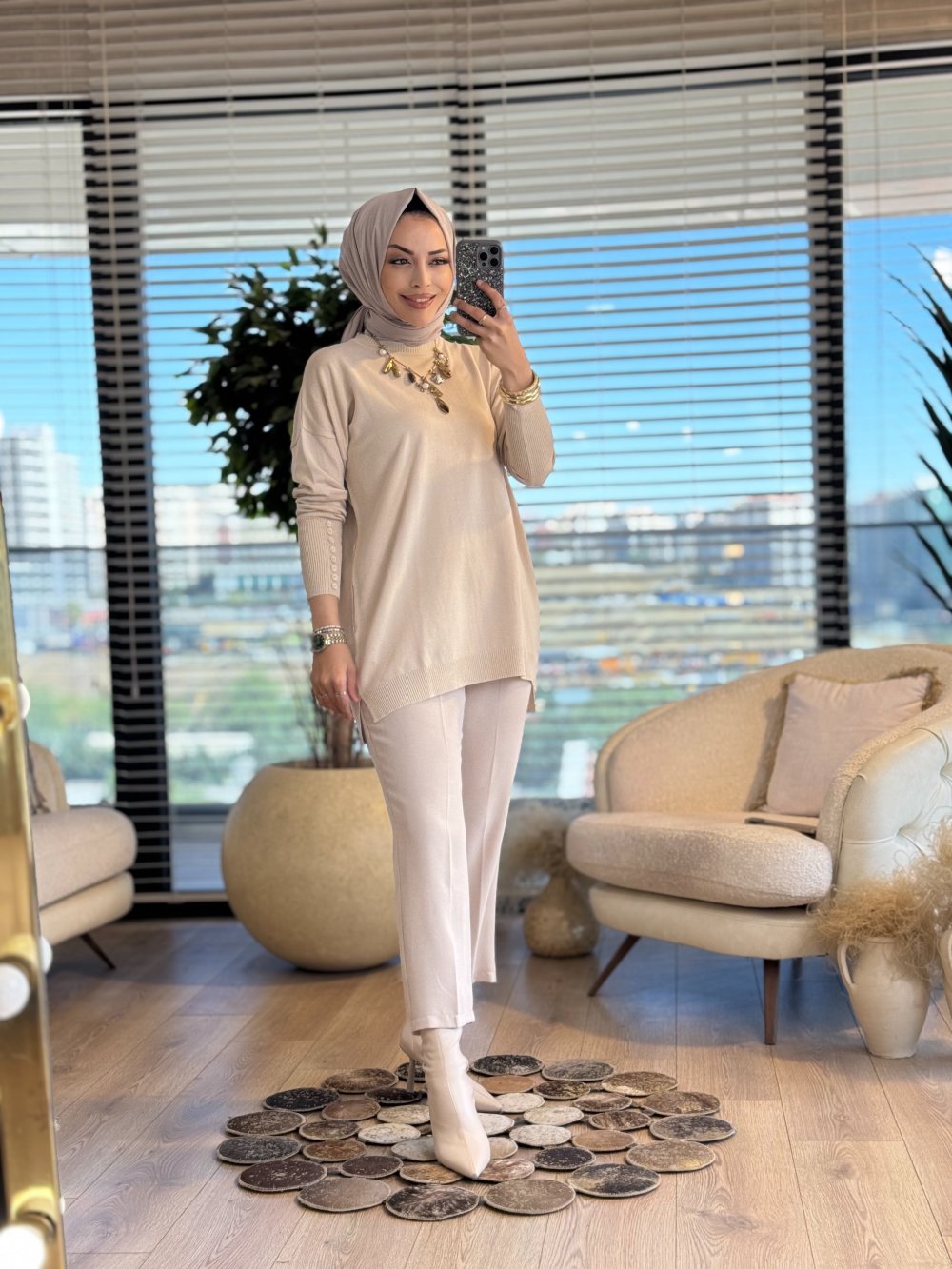 MRW1503 Basic Düğme Triko Tunik Siyah