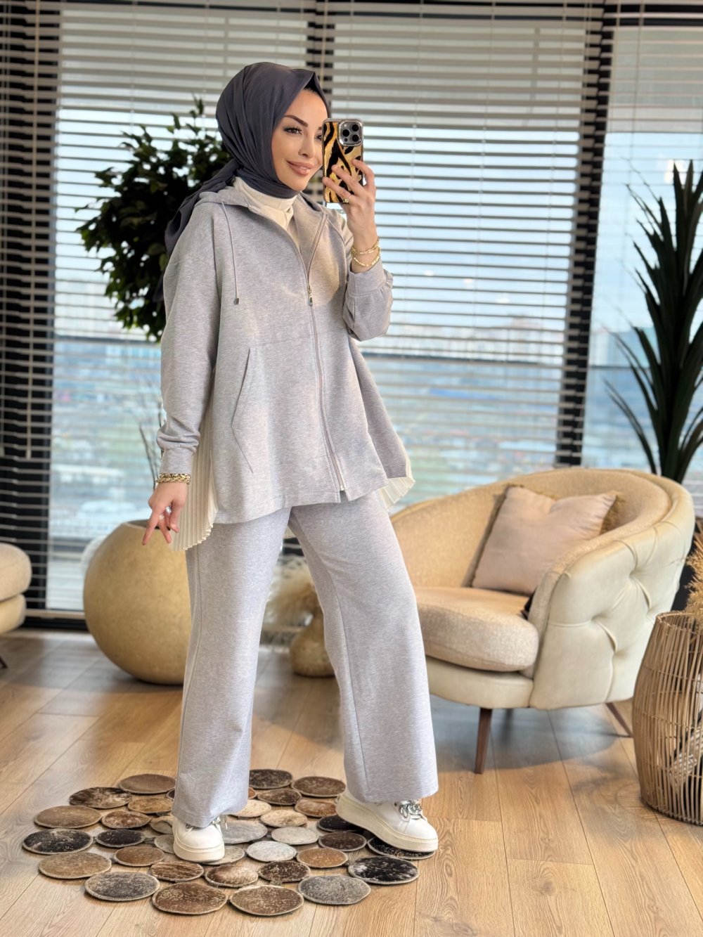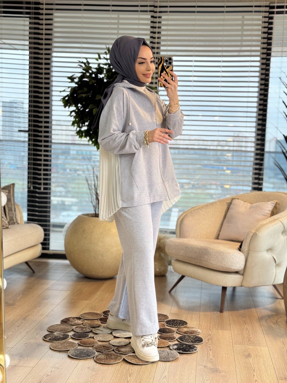 MRW1624 Pilise Şifon Takım Gri
