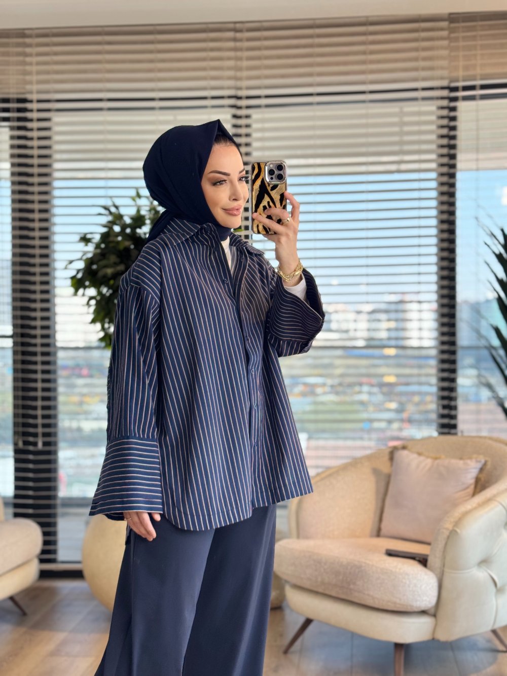 MRW1688 Çizgili Poplin Gömlek Lacivert