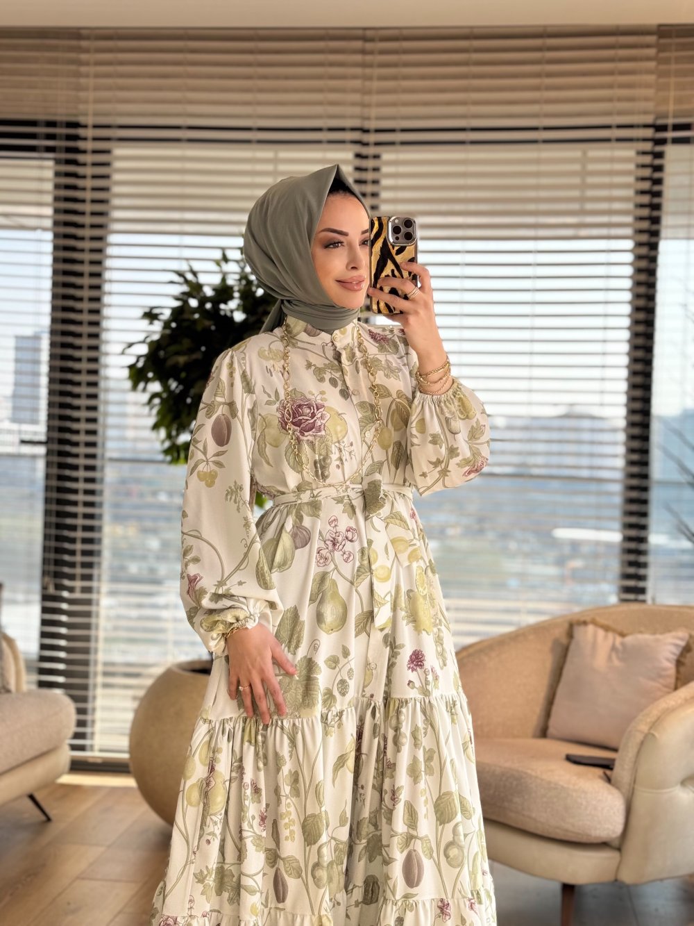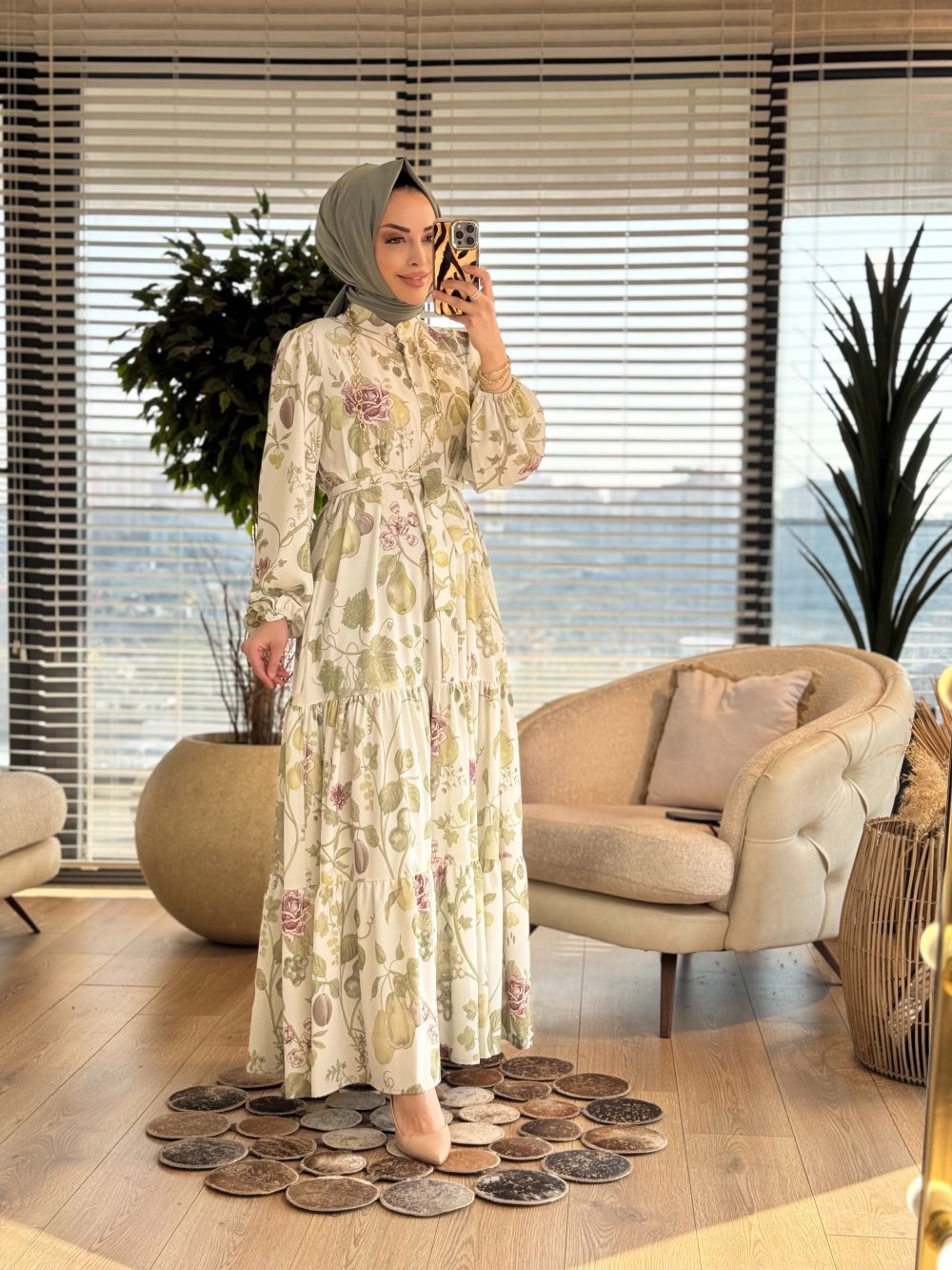MRW1695 Desenli Elbise Yeşil